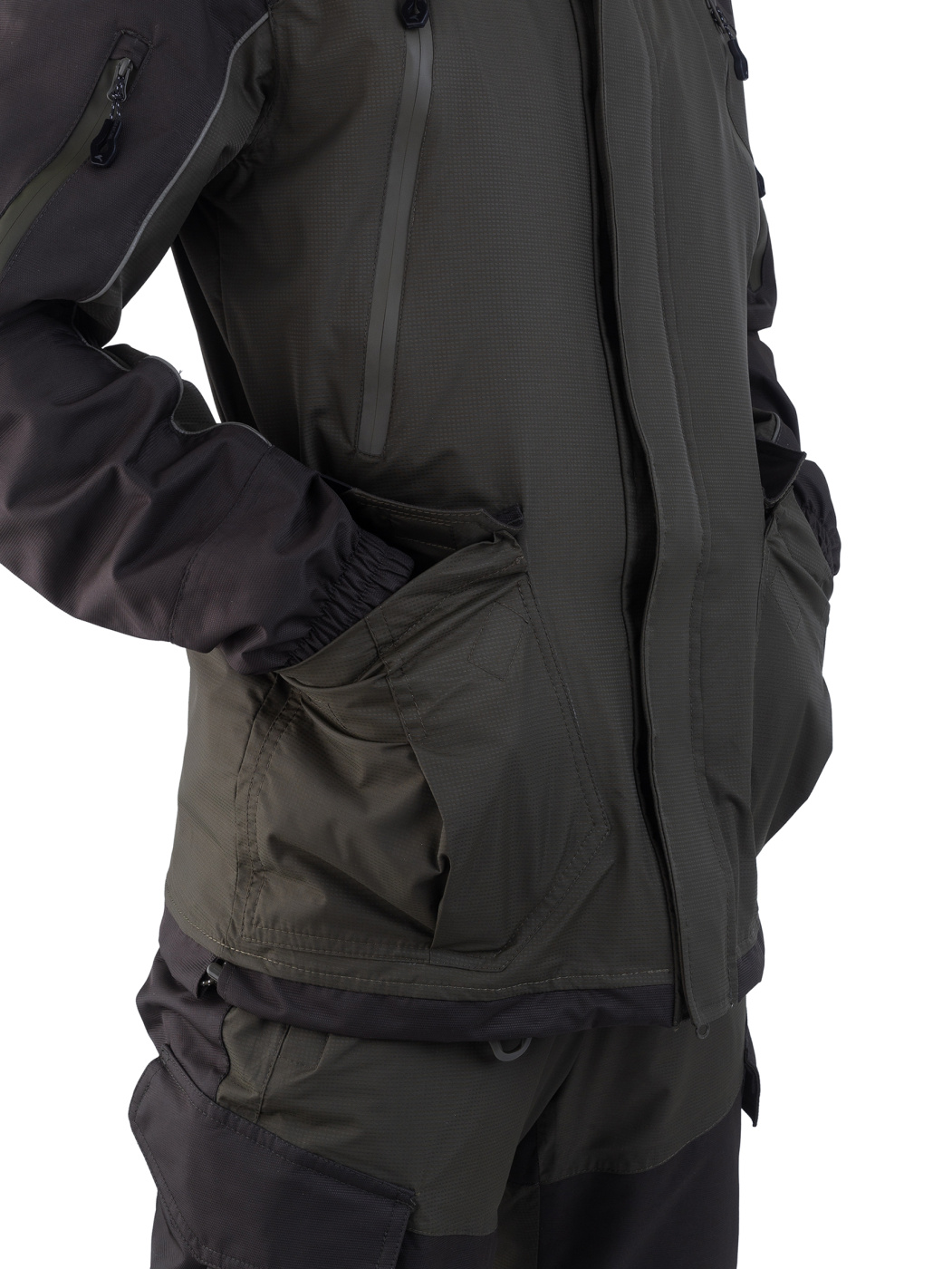 Костюм для рыбалки Скат V2 - идеальный комплект для ходовой рыбалки. Этот костюм объединяет легендарный крой костюма Горка и передовую технологию мембранной ткани, чтобы обеспечить Вам комфорт и защиту в любых погодных условиях. Анатомический крой костюма обеспечивает отличную посадку и свободу движений, позволяя Вам наслаждаться рыбалкой без ограничений. Мембрана PROTEKT с показателями 10000/10000 гарантирует надежную защиту от влаги и ветра, а проклеенные швы предотвращают проникновение влаги даже в самых экстремальных условиях. Рыболовный костюм оснащен влагозащитными молниями, которые обеспечивают дополнительную защиту от воды. Низ рукавов на резинке и регулировка по низу куртки позволяют Вам легко подстроить комплект одежды под свои потребности. Регулировка по капюшону обеспечивает дополнительную защиту от осадков и ветра. Костюм для рыбалки  Скат-Осень также имеет съемную систему помочей брюк, которые обеспечивают идеальную посадку и комфорт при активных движениях. Удобные функциональные карманы позволяют надежно хранить необходимые снаряжение и аксессуары. Светоотражающие элементы на костюме обеспечивают безопасность в темное время суток. Костюм Скат-Осень также оснащен магнитными кнопками, ветрозащитной планкой и ретривером для крепления различных аксессуаров. Внутренний карман на молнии позволяет хранить ценные вещи в безопасности.